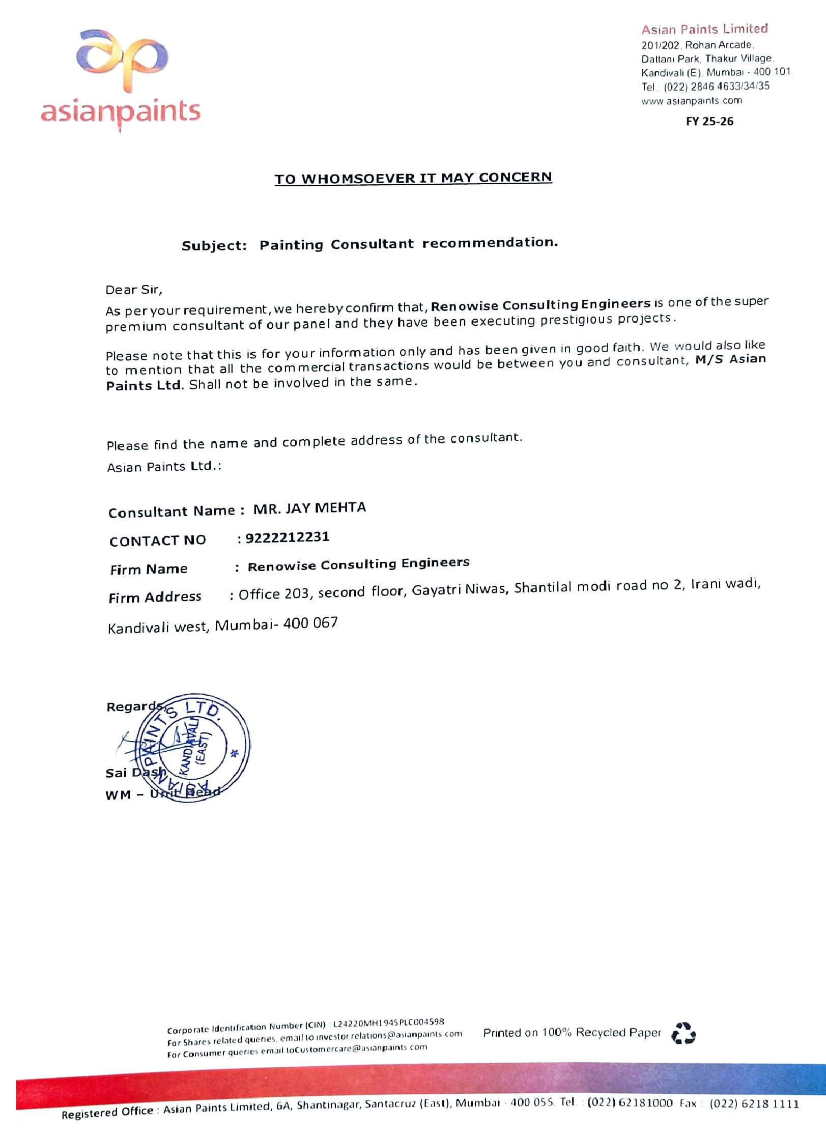 Email: info@renowise.co.in / renowiseconsultingengineers@gmail.com